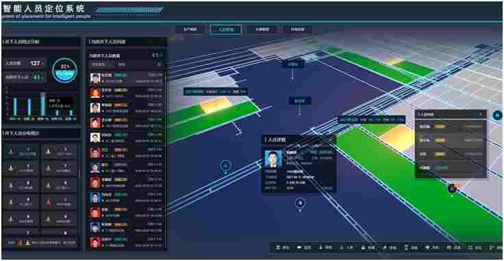 精确定位系统采用UWB定位技术,精度10厘米,数据回传零延时,支持无线定位方式。应用软件支持持PC端和移动端访问,并提供位置实时显示、历史轨迹回放、人员考勤、电子围栏、行为分析、智能巡检等功能。